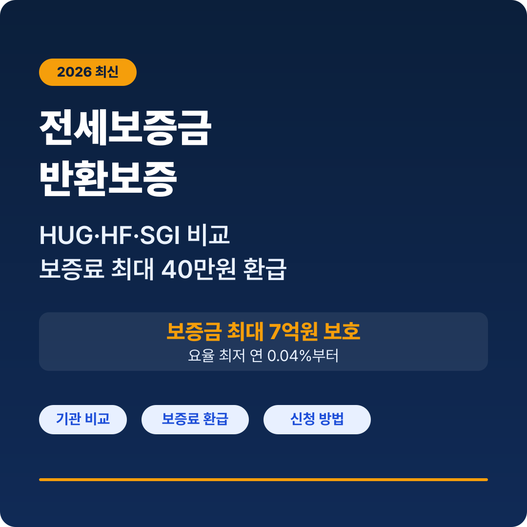 전세보증금 반환보증 3대 기관(HUG·HF·SGI) 비교, 보증료 최대 40만원 환급 방법, 2026년 전세신탁 제도 변화까지 한번에 정리했습니다.