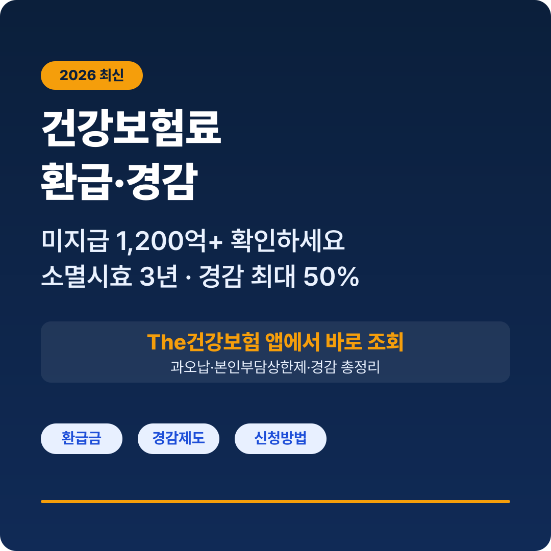 2026년 건강보험료 환급(과오납·본인부담상한제 초과)·경감(도서벽지 50%·농어촌 22%·휴직·육아휴직·65세 이상·장애인) 신청 방법, 소득 정산 제도, 피부양자 자격 변경까지 총정리합니다.