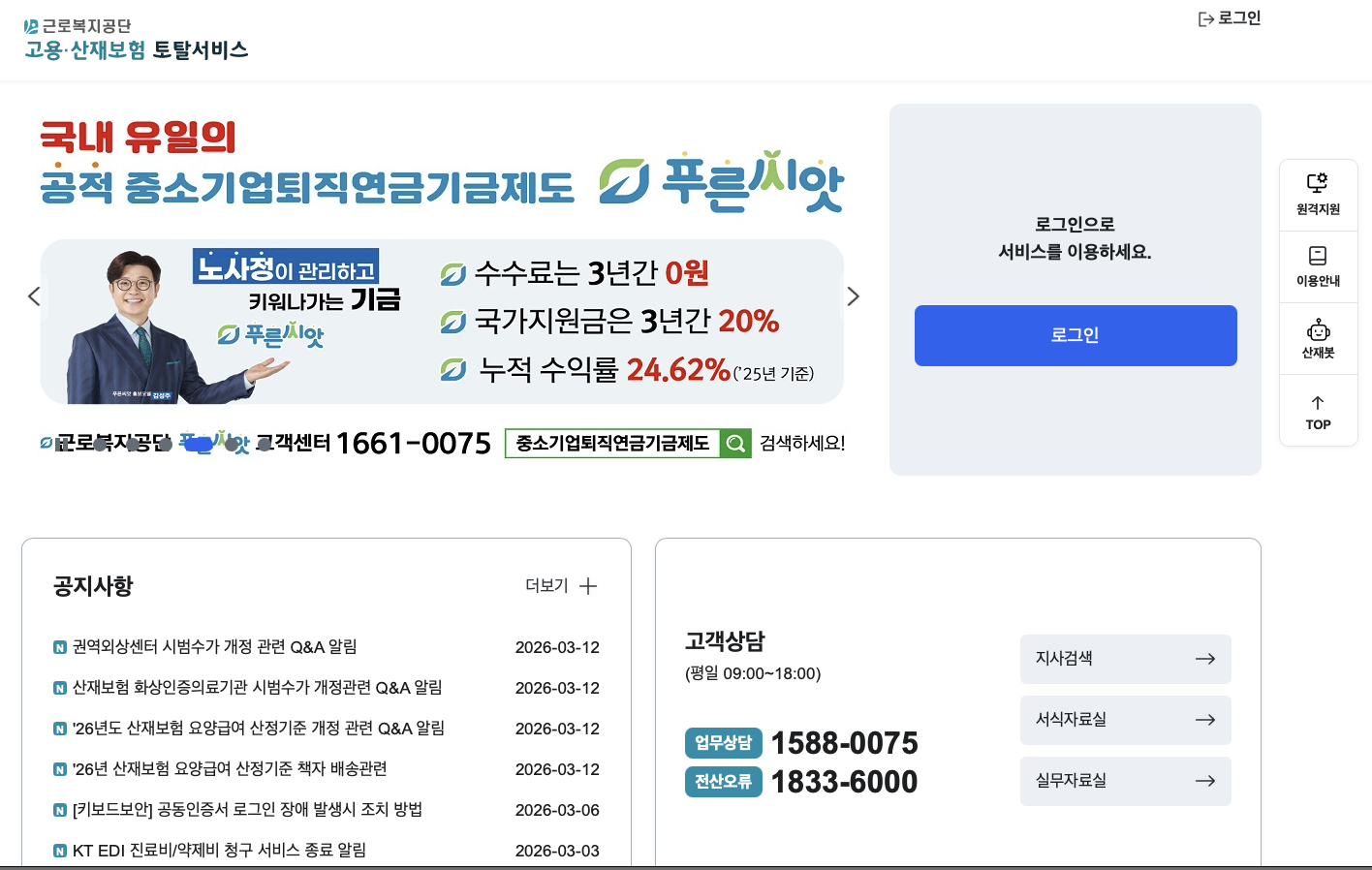이미지를 클릭하시면 근로복지공단 토탈서비스 화면으로 이동합니다.