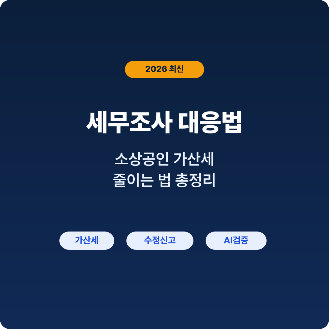 2026년 소상공인 세무조사 유예 대상·가산세 체계·수정신고 감면·AI 세무검증 대응법까지, 세무조사 대비 전략을 한 번에 정리합니다.