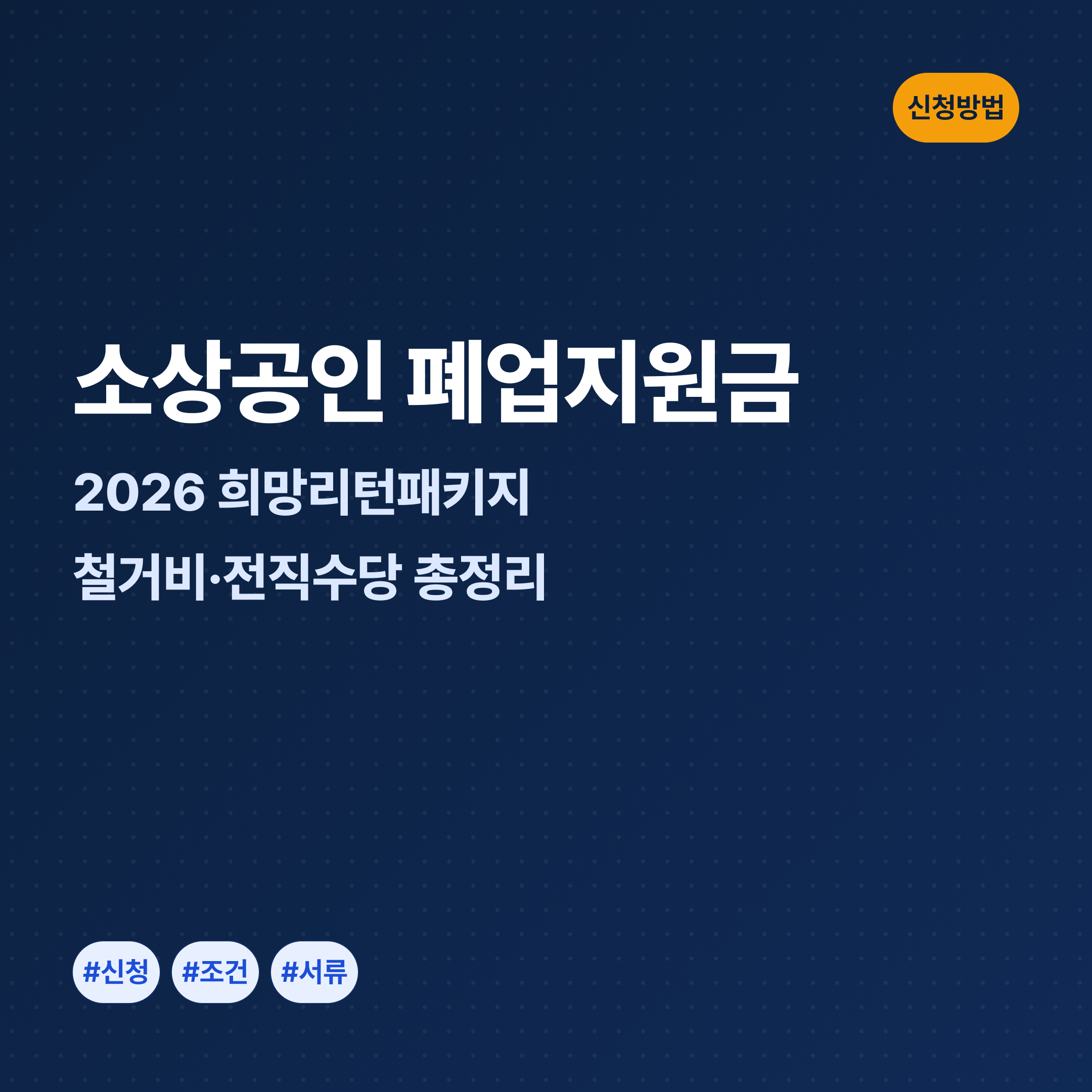 2026 소상공인 폐업지원금(희망리턴패키지) 신청 조건, 점포철거비 지원, 신청 절차를 한눈에 정리했습니다.